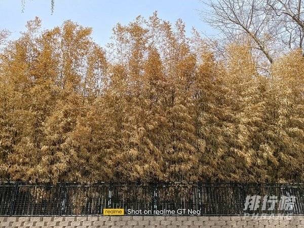 在光照充足的白天,realme 真我GT Neo的成像解析力和动态范围不错,但给人印象最深的还是色彩还原和超广角防畸变。在开启“AI场景增强”后,不管是面对树、草、花还是天空,realme 真我GT Neo都没有过度调艳色彩,尽量保持了原汁原味的风格。