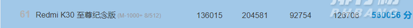 搭载天玑1000+的红米k30至尊纪念版跑分约为56000