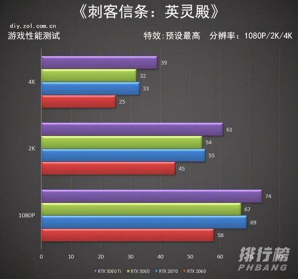 首先是刚刚推出的新游戏《刺客信条:英灵殿》,在实测中我们发现虽然理论成绩测试RTX 2070要强上一些,但实际到游戏中的分数基本与GeForce RTX 3060相吻合,相差不过1帧。而采用NVIDIA Ampere架构的GeForce RTX 3060与GeForce RTX 2060分数差距在25-30%之间。