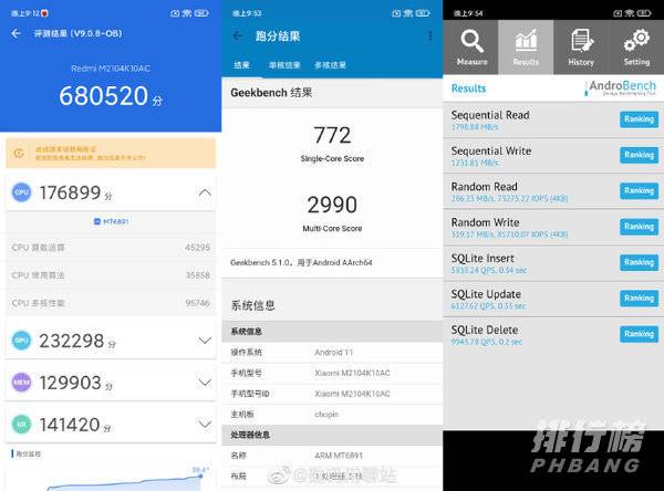 搭载天玑1100+LPDDR4x+UFS 3.1组合,安兔兔跑分68万左右,GB5单线程0.7K+多线程2.9K+。