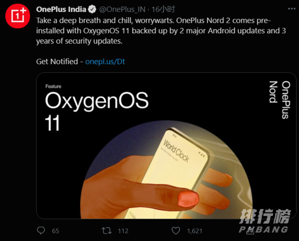 此外,一加印度官方确认,一加 Nord 2 将获得两个 Android 大版本更新,以及三年的安全补丁更新。