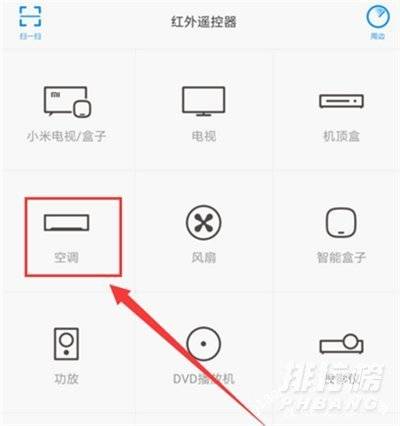 2.进入后有各种设备的遥控选择,在这里我们以选择空调为例。