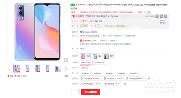vivo Y53s是一款颜值较高的5G手机,在21日晚上22点后将在JD开启一轮秒杀活动,售价为1699元,并且可以享受6期分期免息。