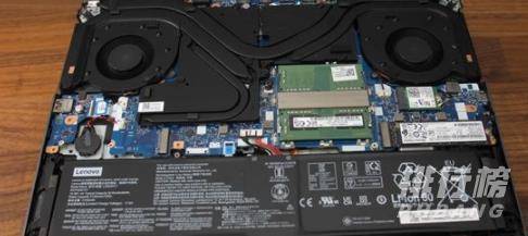 拯救者R9000P则采用了双风扇五热管加均热板的散热设计,并均做了黑化处理,从散热规模上要略逊于幻16。扩展性方面,这款笔记本同样有两个M.2插槽,但R9000P的内存相比幻16,为全可插拔设计,另外内存和硬盘上均覆盖有屏蔽罩和散热罩,需要拆卸后更换,总体扩展性较为优秀。