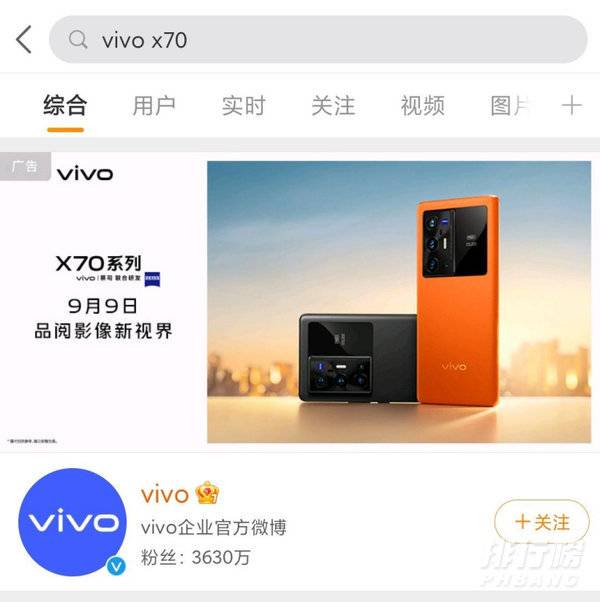 vivo X70 系列此前已经得到多次曝光,现在,vivo 官方在微博发布广告,新机定档 9 月 9 日 19:30 发布。