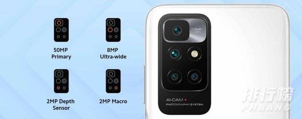 Redmi 10 Prime 后置四摄,包括 5000 万像素主摄(f/1.8)、800 万像素超广角、200 万像素景深以及 200 万像素微距摄像头,前置摄像头为 800 万像素。