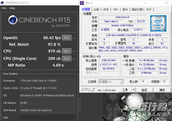 在CineBench R15测试中,i5-11300H单核跑分209,多核跑分979。