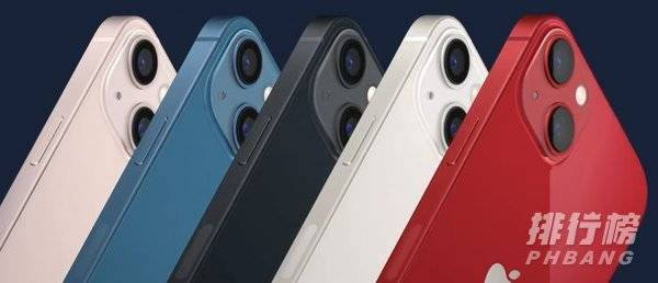 iPhone 13 的配色是下面 5 种,下图从左到右是粉色、蓝色、午夜色、星光色、红色,其中粉色是新颜色,午夜色对应原来 iPhone 12 的黑色,星光色对应原来 iPhone 12 的白色。