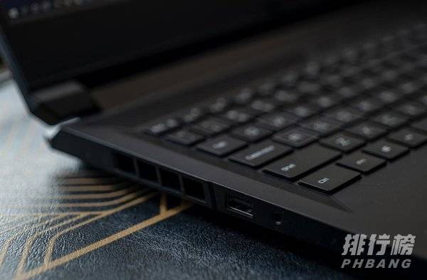 而机身两侧面后方也都有出风口,除此之外机身左侧还有 3.5mm 音频接口和一个 USB-A 接口,机身右侧则是两个 USB-A 接口和一个全功能的 USB-C 接口。