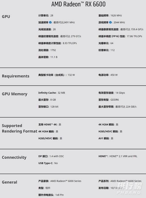 6600与6600xt一样,采用了Navi 23 XL的核心,流处理器数量1792个,现在已经确认了是8G GDDR6显存,32MB无线缓存,依然是128bit的位宽。