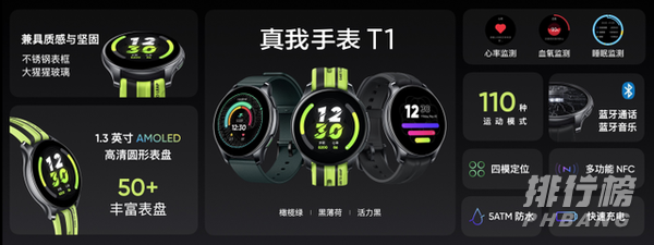 运动部分,真我手表 T1 内置有 9 轴运动传感器,支持 GPS、GLONASS、Galileo、北斗 4 星定位系统以及 5ATM 防水。运动功能很齐全,包括室内跑步、室外跑步、马拉松跑步、室内骑行、户外健走、泳池游泳等在内,内置 110 种运动模式,足够满足大多数人的使用需求。