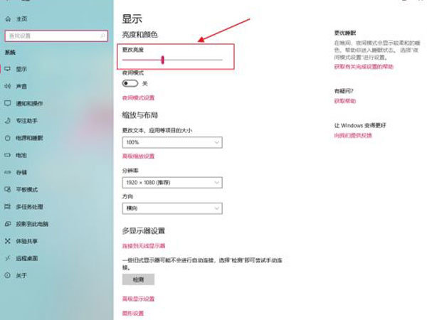 win10系统把电脑屏幕调暗一点方法:在设置页面点击系统,点击显示,在亮度和颜色下左右滑动更改亮度的滑块即可。