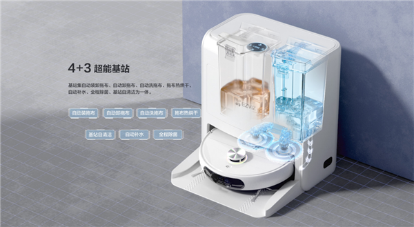 据官方介绍,萤石AI扫拖宝RS2配备了创新的4+3超能基站,支持自动装卸拖布+自动清洗拖布,220转/分钟超强搓洗,干净如新,还支持自动热风干,全程自动除菌,除菌率高达99.9%,干净又卫生。