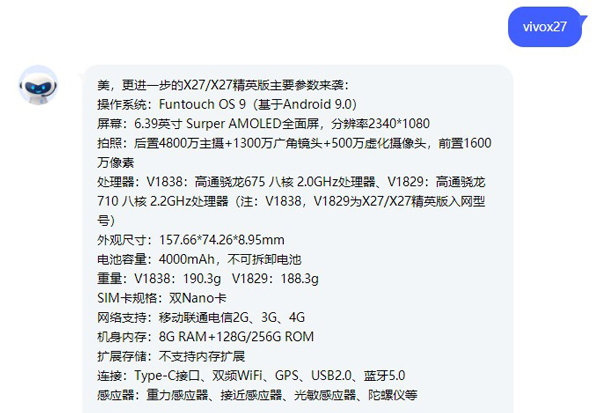 vivox27没有红外线功能,vivox27采用6.39英寸OLED全面屏,分辨率为2340*1080,搭载骁龙675处理器,不支持NFC和红外功能。