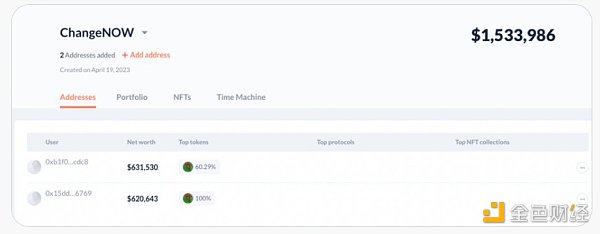 其次是通过ChangeNOW交易所资助的两个钱包。他们以平均0.1 ETH的价格买入总计5T PEPE代币,投资组合价值为150万美元。