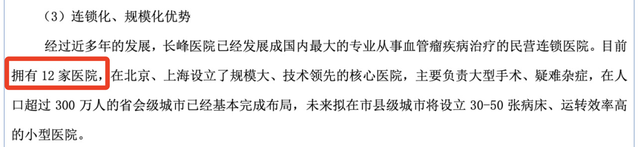 公开资料显示,长峰医院是以血管性疾病尤其是血管瘤类及脉管畸形诊疗为特色的连锁医院,2018年该公司曾设立目标,“力争在5年内全集团医院数量达到100家”。
