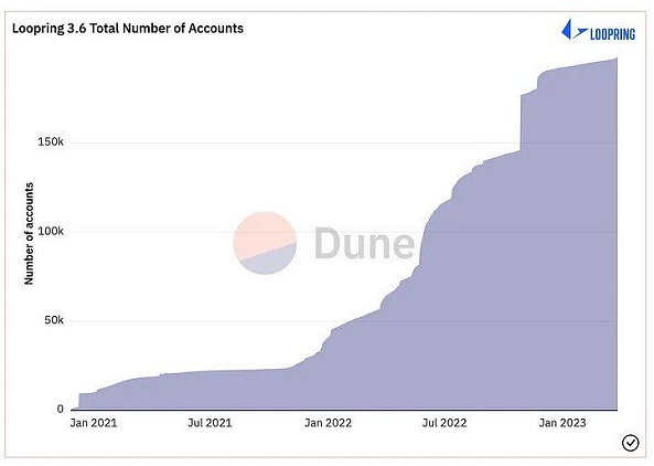 从当前发展结果来看,根据defillama数据,Loopring TVL为1.11亿美元,市值为3.7186亿美元。Loopring项目的最新发展成果,根据Loopring官方博客,2023年第一季度的Loopring项目达到的里程碑有: