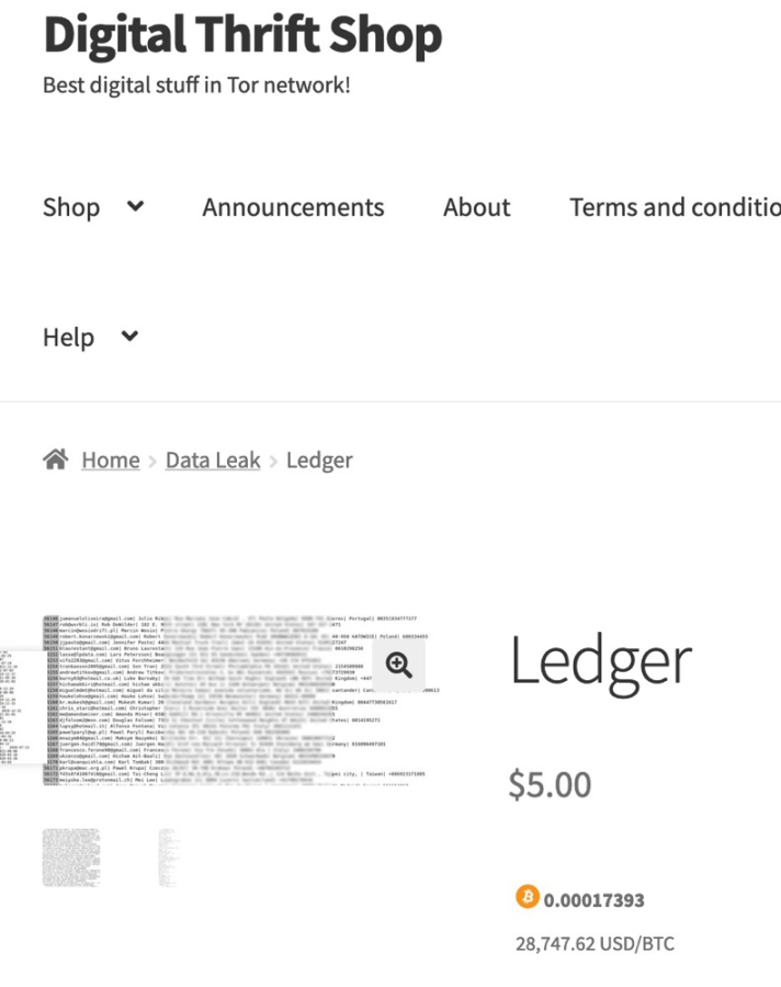 图片:在暗网市场上出售的分类账客户数据(资料来源:Digital Thrift Shop)