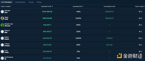 当然也会出现损失,但该巨鲸能很好地意识到并管理自己的损失。不会执拗的持仓,及时止损,接受损失并继续新的交易。此外,即使是损失,基本也只是损失几千美金,代币RIBBIT是该巨鲸最大的损失,不过也才约1.2万美元。但单笔收益却超过6位数,早已覆盖亏损。