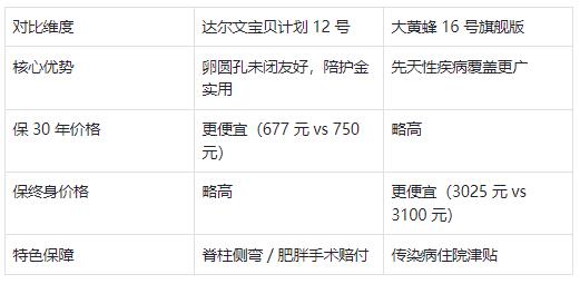 若侧重短期高性价比与人性化条款,选达尔文宝贝计划 12 号;若需保终身且关注传染病保障,可考虑大黄蜂 16 号。