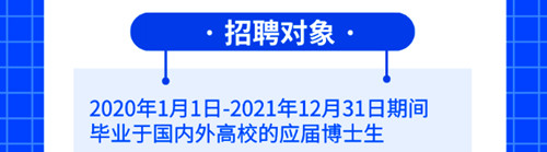 招聘对象面向 2020 年 1 月 1 日- 2021 年 12 月 31 日期间毕业于海内外高校的应届博士生,工作地点包括北京、上海、深圳、东莞、武汉、西安、成都、杭州、南京、苏州等国内主要城市。