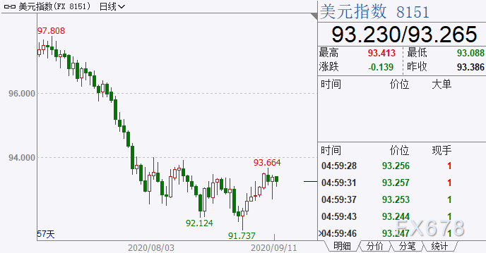 美元兑日元收低0.08%至106.152,因有消息称一款新冠疫苗将被推迟推出,避险货币日元上扬。此外,美国科技股继续走低,纳斯达克指数创7月末以来新低,也促使一些交易员调整仓位。