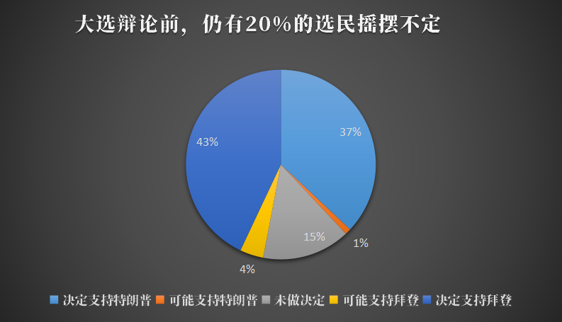 对于仍未决定要支持谁的选民来说,这次辩论是他们更深入了解两位候选人的机会。从MonmouthUniversity的最新民调数据来看,美国目前仍有近20%的选民在观望。