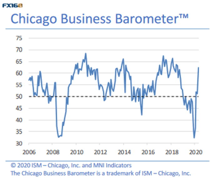 受今日美国经济报告后正面风险情绪的复苏影响,美元走软。MNI market news或ISM Chicago的一位雇员提前两个小时发布了芝加哥商业景气指数。9月份PMI指数飙升11.2点,至62.4的高点,这是自2018年12月以来的最高水平。