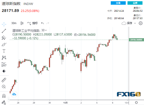 (道指30分钟走势图,来源:FX168)