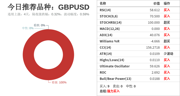 英镑美元(上涨:4天,隔夜涨跌幅:0.32%,波动幅度:0.59%)。