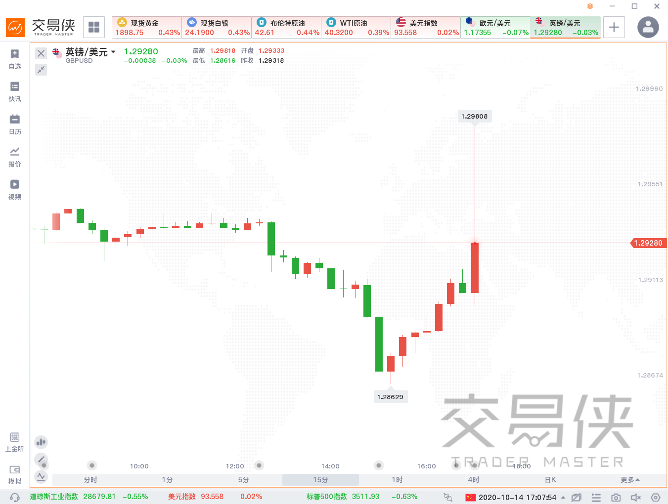 离英国政府规定的10月15日脱欧大限仅剩1天,根据英国首相约翰逊此前的表态,10月15日就是英国政府规定的脱欧大限,也就是明天。双方火药味越来越足,然而14号下午,英国态度再反转,市场消息称英国方面表示不会立即脱离与欧盟的贸易谈判,英镑兑美元一度拉升逾80点。