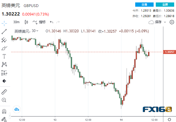 (英镑/美元30分钟走势图,来源:FX168)
