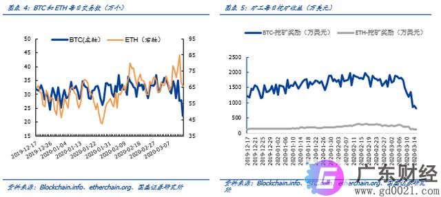 上周BTC新增交易210万个,环比下降10.8%;ETH新增交易521万个,环比上升10.8%。