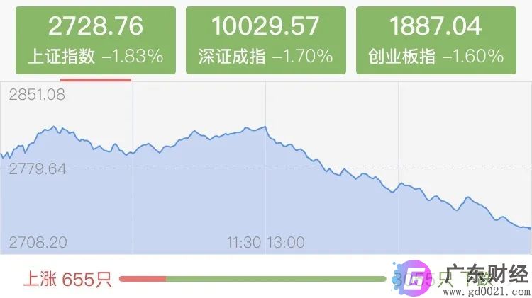 A股市场也风云突变,三大股指均从日内高位连续杀跌,并均以全天最低点收盘,收盘跌幅全部超过1.5%。