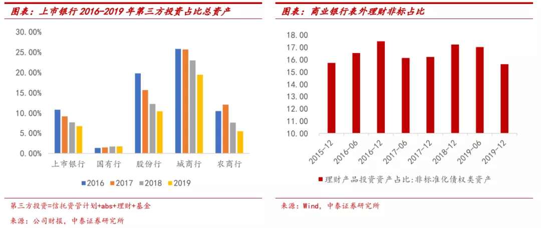 资产质量稳健性会好于市场预期。存量维度,银行表内外更加干净。1、银行的表内在之前4万亿那波刺激下的包袱基本已经出清,13到16年累积处置不良3万亿,占比总贷款6个点。2、而影子银行在17、18年去杠杆下,19年表内非标规模较16年下降了近3万亿,压缩23%;表外非标占比也在下降,而且表外压力最大点已经过去,非标资产期限大多集中在 3 年左右,上一轮非标债务扩张开始于 2015 年下半年,18年是非标收缩压力的最大点。总体来看,经过这一轮表内外的处置,银行整体报表是更加干净的。