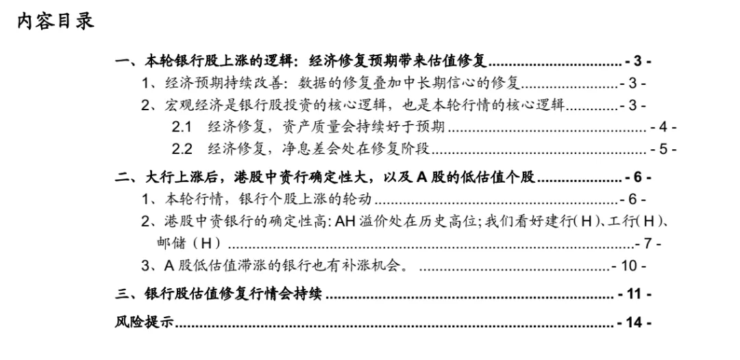 一、本轮银行股上涨的逻辑:经济修复预期带来估值修复
