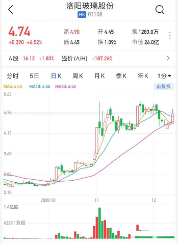 洛阳玻璃股份(1108)盘中直线拉升一度涨逾9%,现报4.74港元,涨幅6.5%,最新总市值26亿;公司A股涨1.83%,报16.12元。