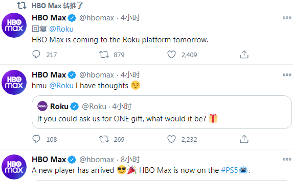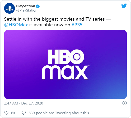 站长之家(ChinaZ.com)12月17日 消息:今天,索尼官方在Twitter宣布,PS5游戏主机正式迎来HBO Max流媒体视频服务,同样上线该服务的还有美国流媒体电视提供商Roku。