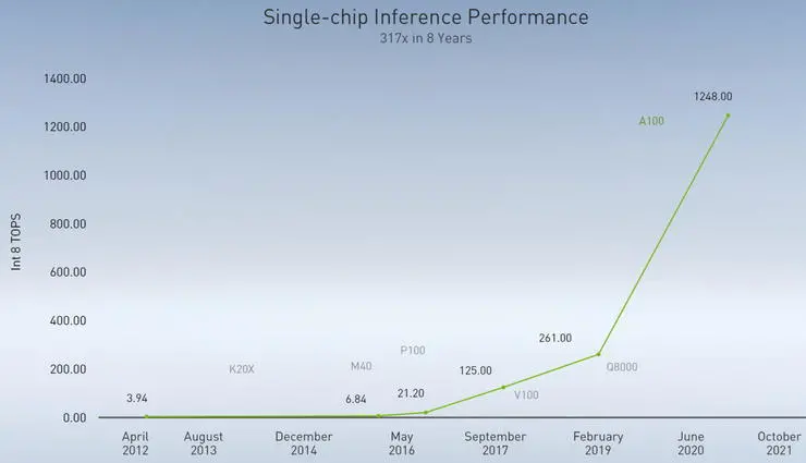 在12月份的英伟达(NVDA.US)2020 GTC China大会上,英伟达首席科学家兼研究院副总裁Bill Dally在演讲中称,如果我们真想提高计算机性能,黄氏定律就是一项重要指标,且在可预见的未来都将一直适用。 这是“黄氏定律”这一命名首次被英伟达官方认可。黄氏定律具体是指英伟达创始人黄仁勋对AI性能的提升做出的预测, GPU将推动AI性能实现逐年翻倍。大会上,Bill Dally用三个项目说明黄氏定律实现的关键,包括实现超高能效加速器的MAGNet工具、以更快速的光链路取代现有系统内的电气链路、全新编程系统原型Legate。