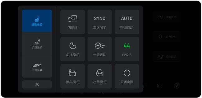 11、新增功能控制屏快捷菜单。坐姿切换、情景模式等功能,支持在设置中进行自定义。