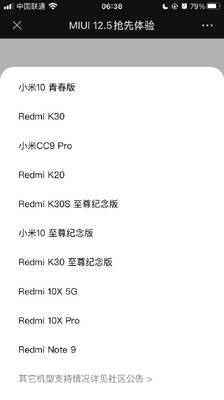首批包括小米10青春版/10/10Pro/至尊纪念版、Redmi K30/K305G/K30Pro/K30i5G/K30S至尊纪念/K30至尊纪念版、小米9/9SE、小米CC9e/CC9Pro、Redmi K20/K20Pro、Redmi10X5G/10X Pro、Redmi Note7/Note7Pro、Redmi Note9等,已可报名更新。