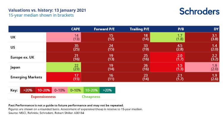 管理着6626亿美元的国际知名资产管理集团Schroders的研究分析主管Duncan Lamont近期撰文就2021年是否还有“便宜的”股市这一问题进行分析。主要内容如下: