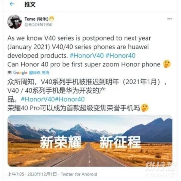 除此之外,荣耀V40的影像会是一个很大的“亮点”,荣耀V40前置3200万单摄,后置三摄相机模组,包括6400万像素主摄、1200万像素超广角,以及支持10倍光学变焦的长焦镜头,也有消息称,后置主摄会用上5000万像素的RYYB传感器。