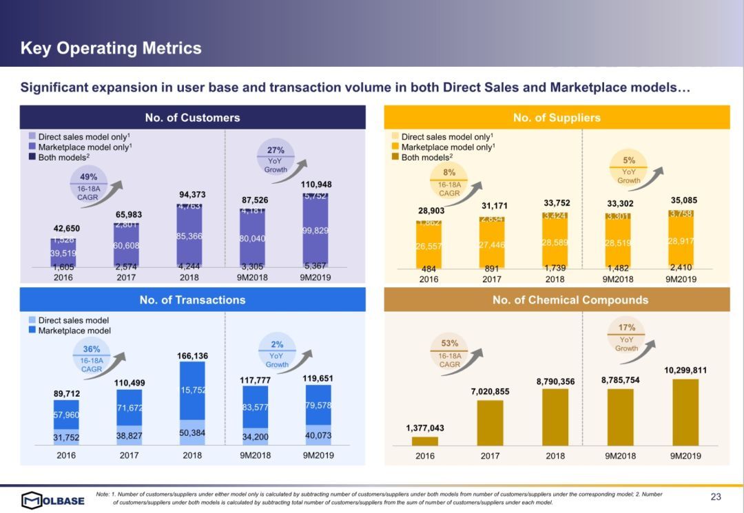 其中前者是指摩贝基于大量化学品和交易数据的MOLBASE知识搜索引擎;后者则指摩贝通过直营和撮合交易两种形式以完成线上交易,同时提供仓储物流服务。但其对于直营模式的依赖程度极高,在2019年前三季度的收入占比高达99.8%。