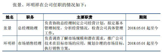 在第二轮审核问询函的回复中,复洁环保称,2018年5月1日至今,张景任总经理助理,环明祥任市场销售经理。