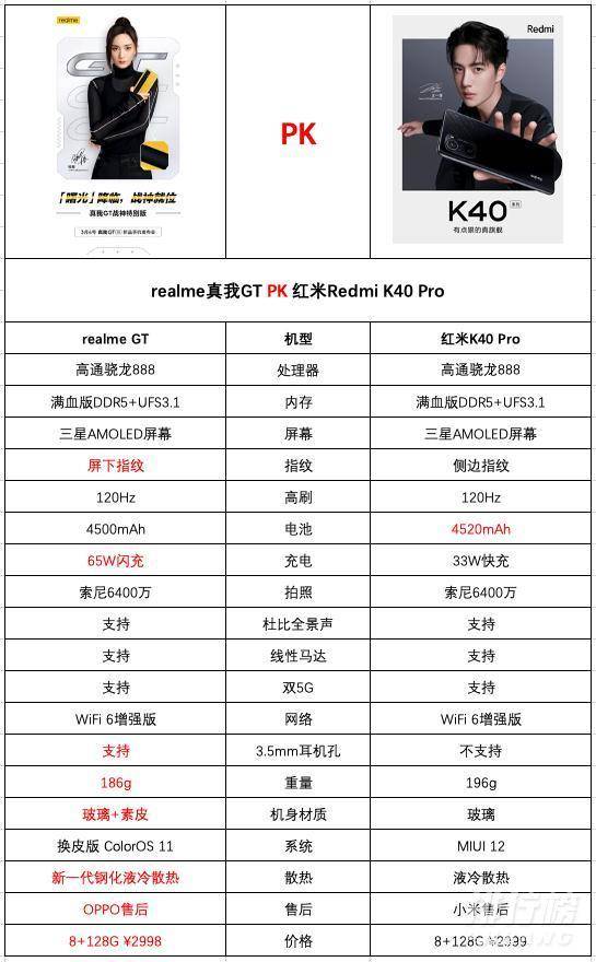 1.参数对比 真我gt和红米k40pro哪个好_真我gt和红米k40pro对比