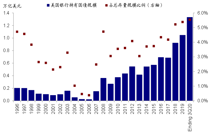 3)延长对银行机构投资国债资本充足率豁免要求的到期。疫情期间,美联储为缓解国债市场流动性压力,允许大型金融机构可以不将持有国债纳入资本充足率计算中,但这一豁免3月底截止。截止三季度,美国银行机构持有国债1.3万亿美元,占到总存量规模的5.5%,相比疫情前新增2850亿美元。如果豁免取消的话,在美国银行目前资本充足率处于历史新高的背景下,可能更多体现为降低对国债的需求。