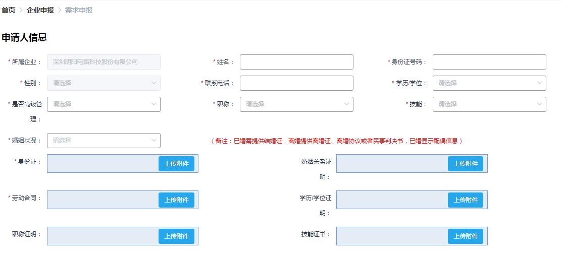 第二步:点击需求申报按钮,进入需求申报页面,如图: