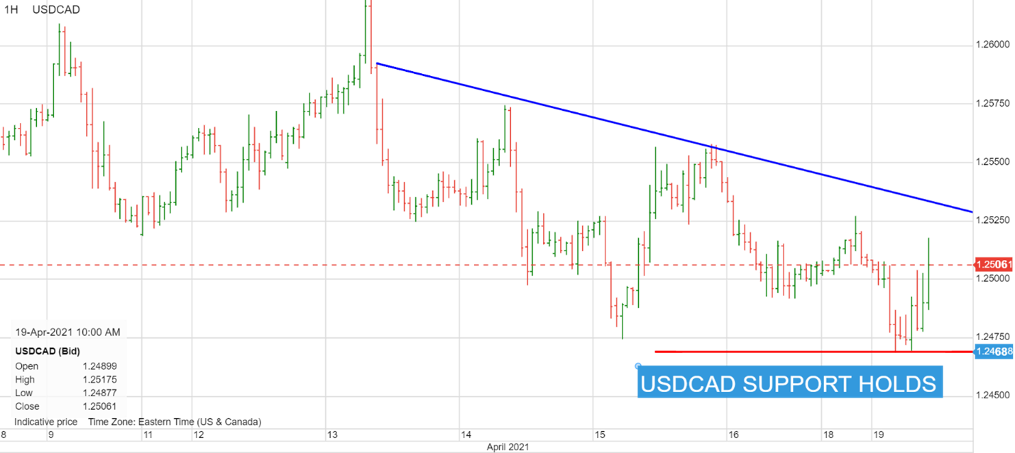 美元/加元:美元/加元依旧未能持续突破1.2500区域。隔夜市场上价格下跌,从1.2527跌至1.2473,但随后在纽约交易时段反弹至1.2515。美国国债收益率上升,标普500指数价格下跌。今天收盘时,加拿大政府将公布两年多来的首次预算。预计赤字将是巨大的,在3500亿到4000亿美元的范围内。这一消息可能不会引起外汇市场的任何反应,因为其他10国集团国家的巨额预算赤字也并未影响其货币。