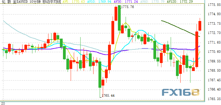(现货黄金10分钟图 来源:)